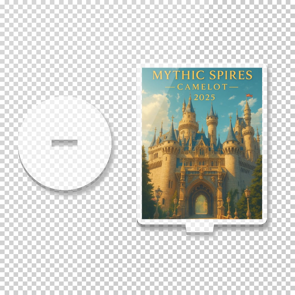 伝説の都キャメロットを卓上サイズのアートに。光を受けて縁がきらめく透明アクリルに、高精細プリントで“MYTHIC SPIRES – CAMELOT 2025”を再現しました。デスクや棚に置くだけで、小さなギャラリーのような存在感。